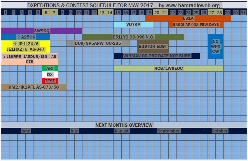 CALENDÁRIO DE EXPEDIÇÕES DX E CONCURSOS – MAIO 2017