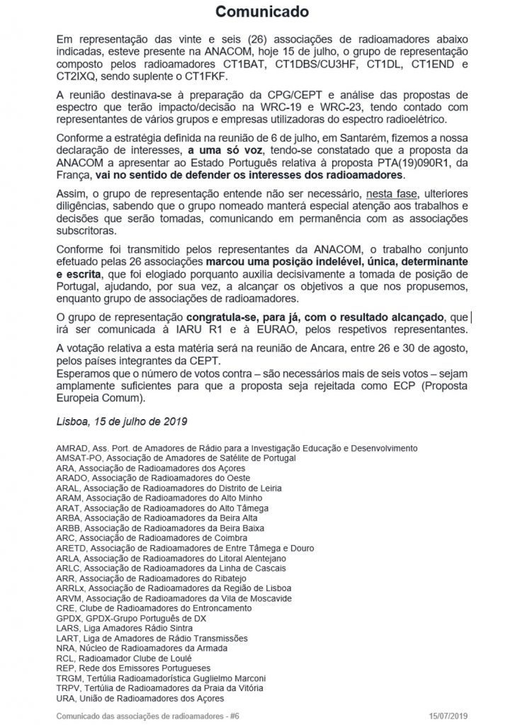 144 MHz - 2 m REP WRC23 144-146 MHz, 2 metros, Rede dos Emissores Portugueses, REP, WRC19, WRC23 CT1END 15/07/2019 0 Comentários Comunicado #6 – Reunião na ANACOM 1663 x carregado & 206 x vizualizado