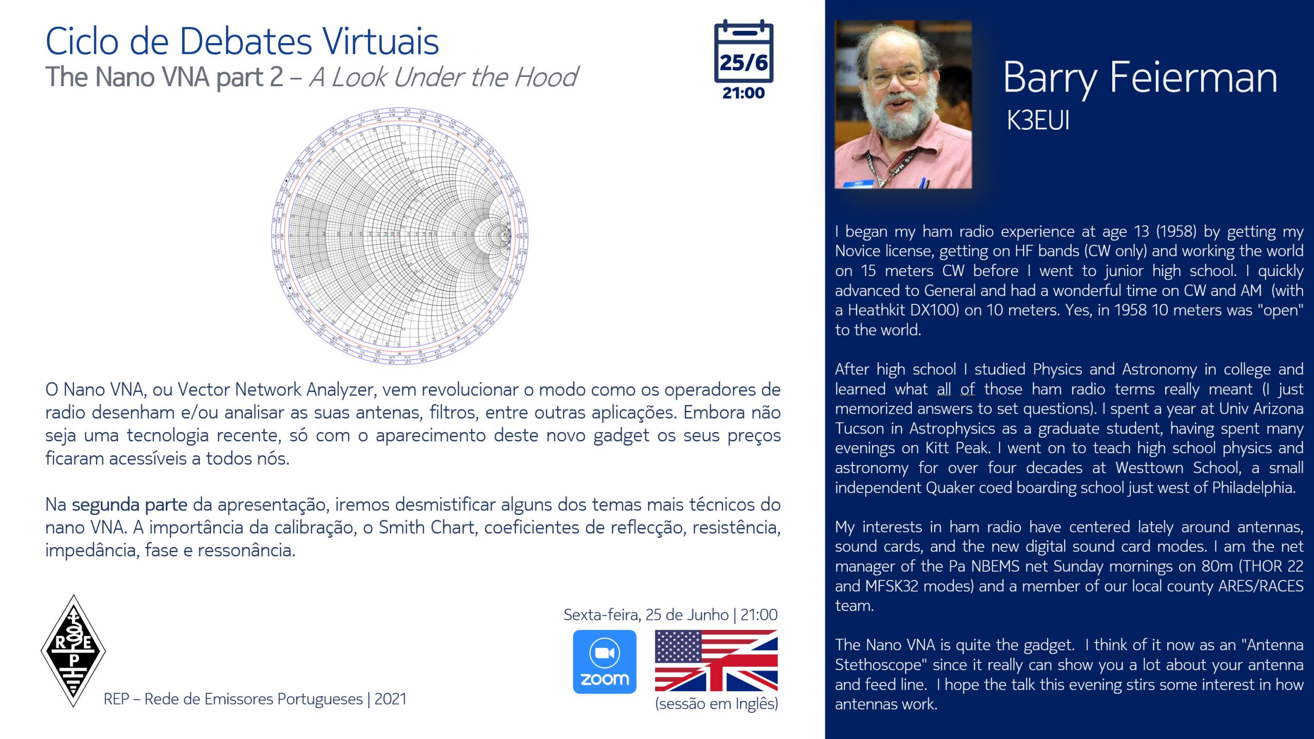 Tópico: Debates Virtuais - 2 Nano VNA-An antenna stethoscope por Barry K3EUIHora: 25 jun. 2021…