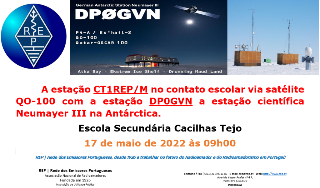 CT1REP/M na Escola Sec. Cacilhas Tejo vai estabelecer contacto rádio via satélite com a Estação DP0GVN na Antárctica.