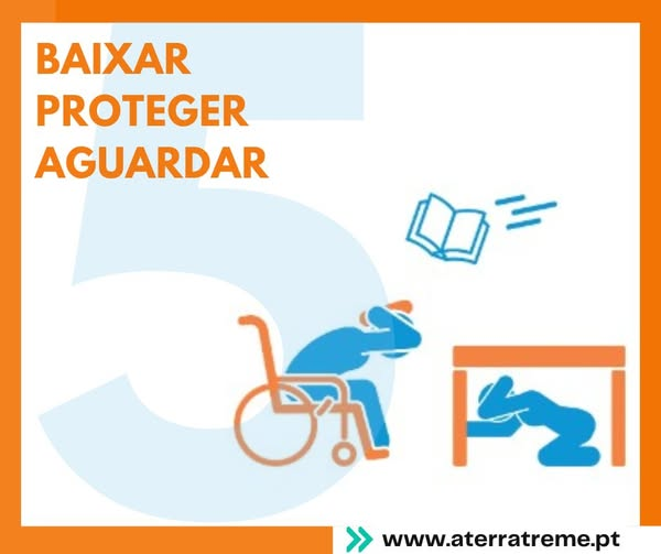 Pratique os 3 gestos que podem salvar vidas: Baixar, Proteger, Aguardar.