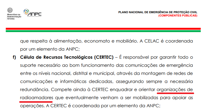 | E-Mail do Sr.Eng. Helder Silva , Director de Serviços Técnicos do SNBPC, 09 de Junho de 2004. Normas de Actuação das Associações de radioamadores em acções de Protecção Civil. From: Helder Silva Sent: Wednesday, June 09, 2004 10:31 AM Subject: Normas de Actuação das Associações de radioamadores em acções de Protecção Civil Caros Amigos, "O Ser Humano tem várias formas de aprender. Uma dela é com os erros que vai cometendo." Assim, considero que após alguns dias passados sobre a assinatura dos protocolos, e decorrente de uma situação pontual de alguns distritos (EURO 2004) onde se perspectiva a colaboração das Associações urge definir regras claras de actuação das associações. O erro descrito na frase inicial prende-se simplesmente com o facto de até à data ainda não existir nenhum documento orientador escrito sobre estas matérias e ter-se "tentado" resolver a situação de alguma forma (sempre a mais construtiva, mas nem sempre a mais produtiva! O ser humano tem destas coisas!). Assim , tomo a liberdade de vos enviar o documento em epígrafe, que foi escrito com a maior brevidade possivel, que pode conter algumas imprecisões (espero que poucas) e que traduz os princípios básicos de justiça e equidade que considero mínimos. Com este documento, ficam definidas as Regras para Futuro (Acções de Prevenção, Catástrofe e Calamidade e Exercícios), incluindo o EURO 2004-(Acção de Prevenção). Quanto ao EURO, todos os distritos com excepção de Lisboa, já estavam assegurados. Quanto ao Distrito de Lisboa, e de acordo com o Documento em Anexo, caberá à REP assegurar o apoio, porque é a única associação protocolocada, com sede no Concelho de Lisboa. Peço, que a REP entre em contacto com o CDOS de Lisboa, afim de avaliar a forma de colaboração.! A todos os que de alguma forma tiveram a bondade de ajudar nesta questão, mesmo assertivamente, o meu muito Obrigado, pois sem eles este documento não teria saido com a celeridade que saiu. Espero comentário e proposta para um 2ª Versão do Documento. Só com a vossa ajuda podemos TODOS melhorar. Comentário final. "Esta nossa relação ainda é uma criança. Vamos tratá-la, como qualquer criança gostaria de ser tratada!" Um Grande Abraço a todos e 73's Hélder Sousa e Silva PS. Peço o favor de difundirem pelas restantes Associações, pois estou de Férias e não tenho os endereços comigo. Obrigado Documento : Normas de Actuação das Associações de radioamadores em acções de Protecção Civil. |